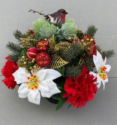 A Christmas Grave Pot With Artificial Flower Arrangement Abigailrose